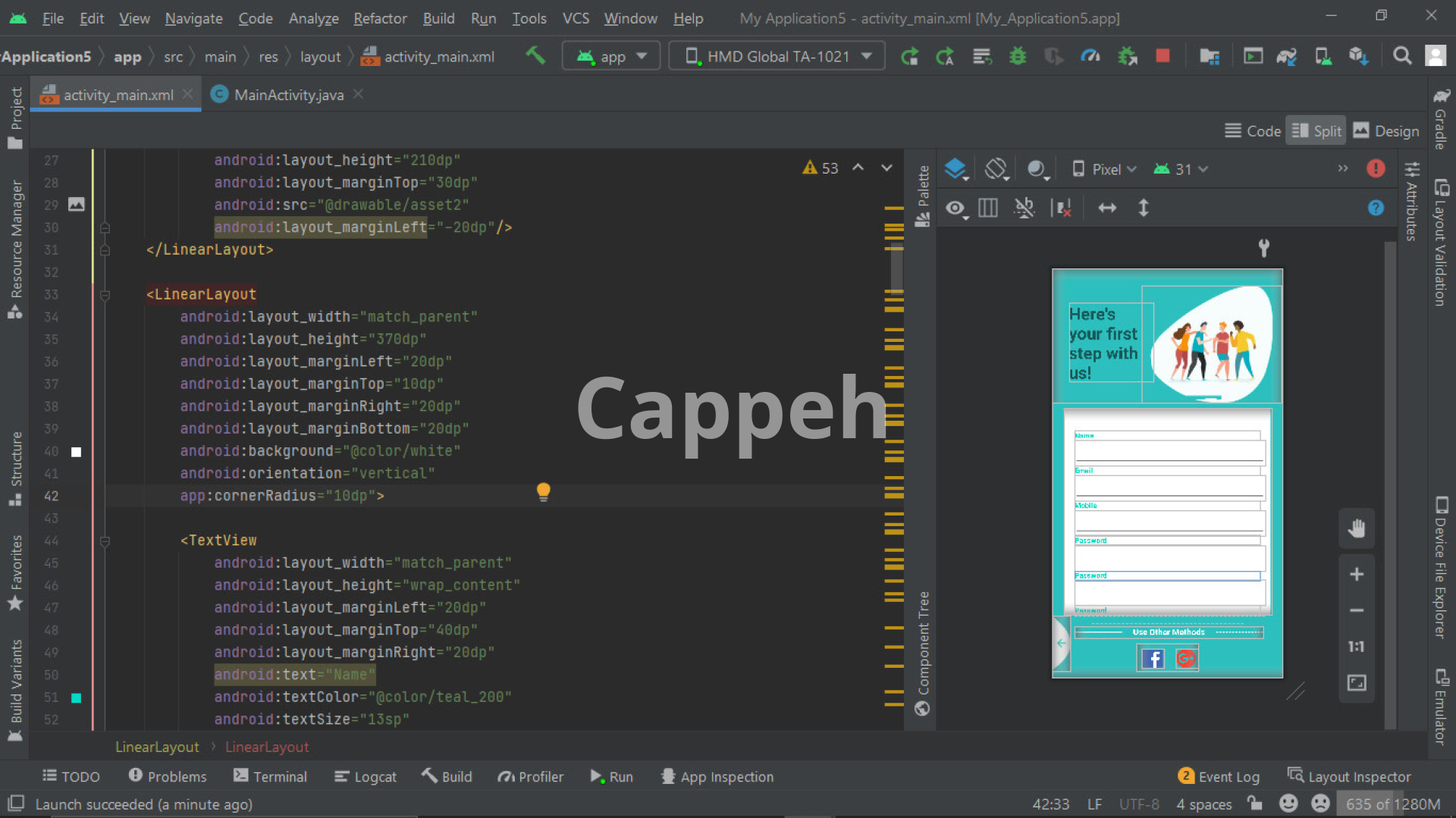Introducing the services of designing user interface layouts and Android application XML in Android Studio