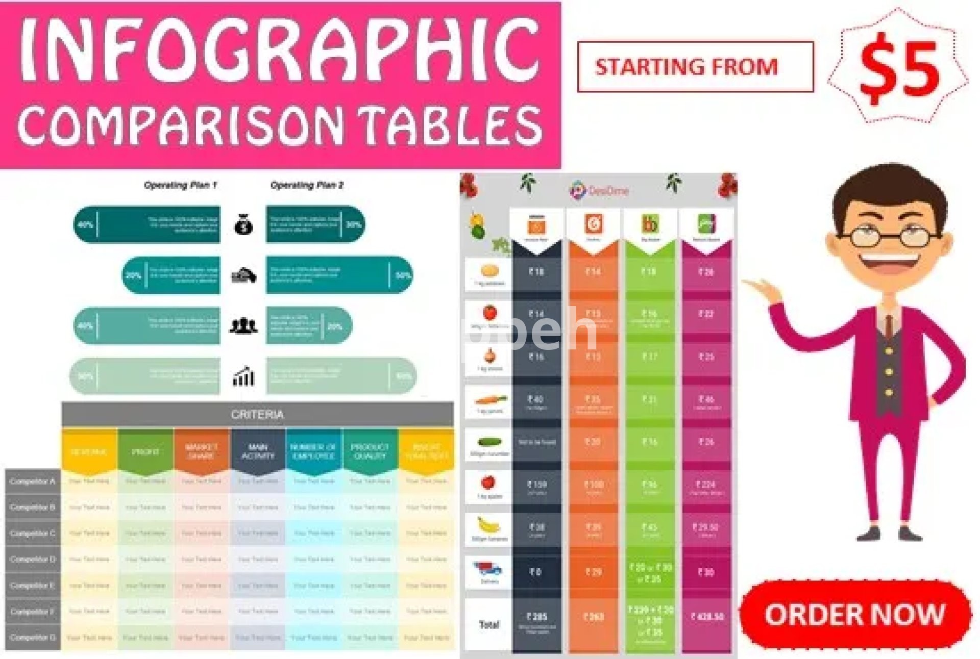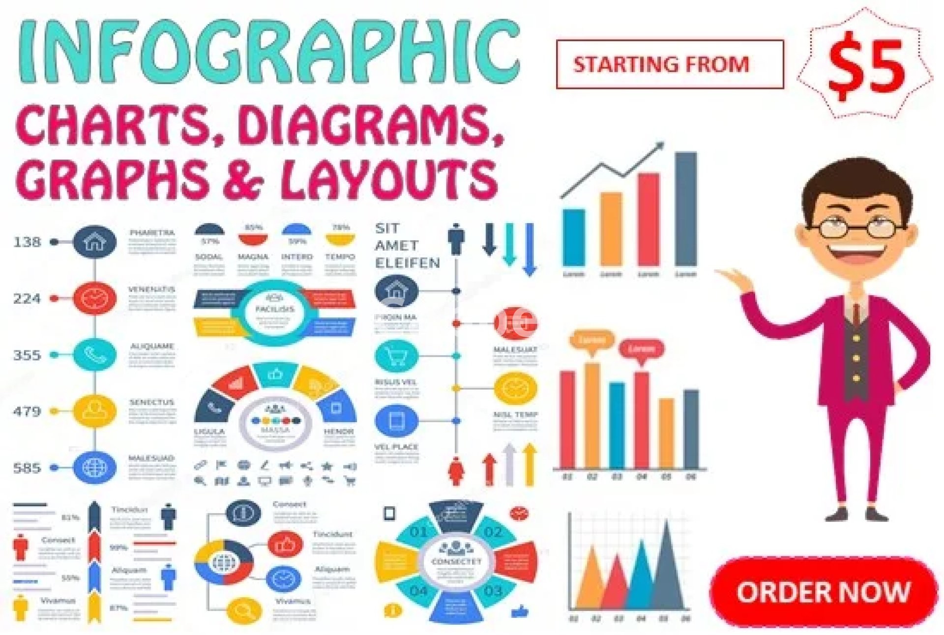 If you're in search of an expert infographic designer to create process business charts, graphs, comparison tables, pie charts, organizational flow charts, network diagrams, and more, you've come to the right place.