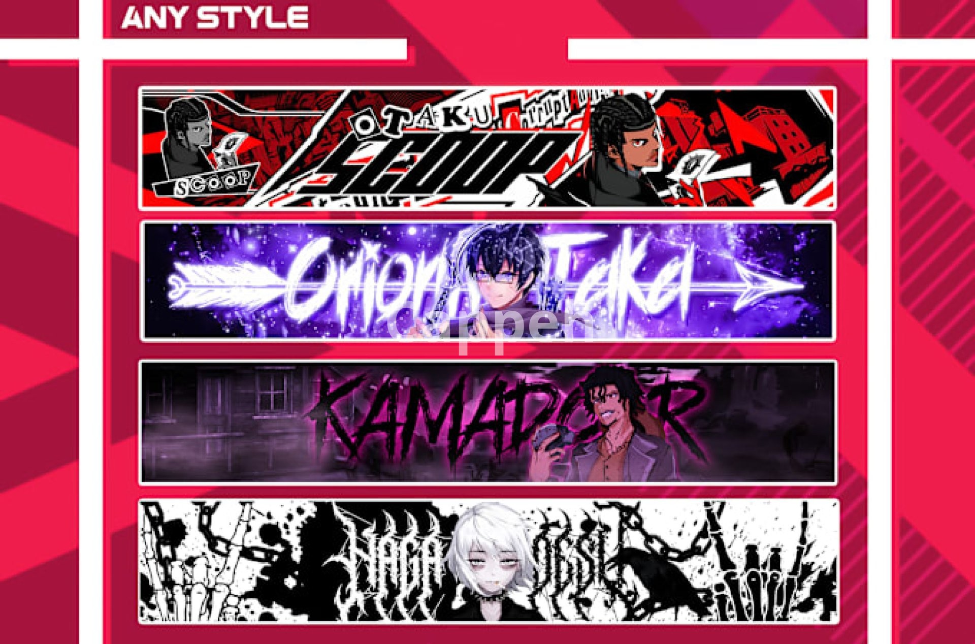 Introducing unique anime banner design services for YouTube, pull, difference, hit