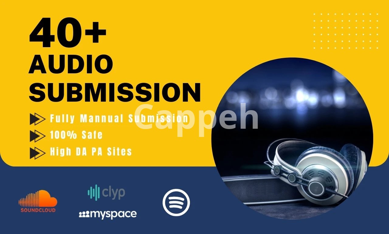 I provide customized and manual audio submissions to elite, high-ranking audio sharing sites, including well-known platforms like SoundCloud, MySpace, and major social networks such as Facebook and Twitter. Each submission will include a link to your website for optimal exposure.
