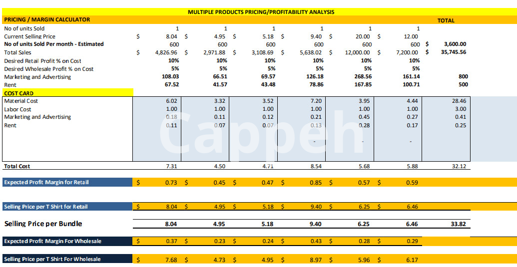 Introducing the services of product profit margin calculation, pricing and costing