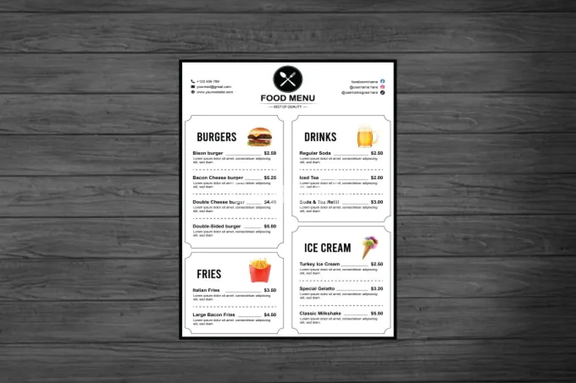 I will do restaurant food business card, menu, price list