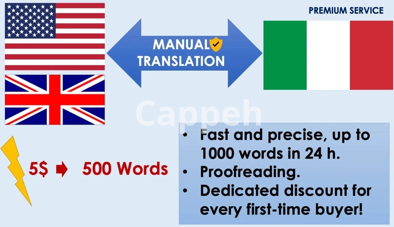 Keywords: Italian translation, English translation, Italian to English, English to Italian, fast translation, technical translation, proofreading, professional translation, Traduzione inglese, Tradurre inglese, da italiano a inglese, da inglese a italiano.