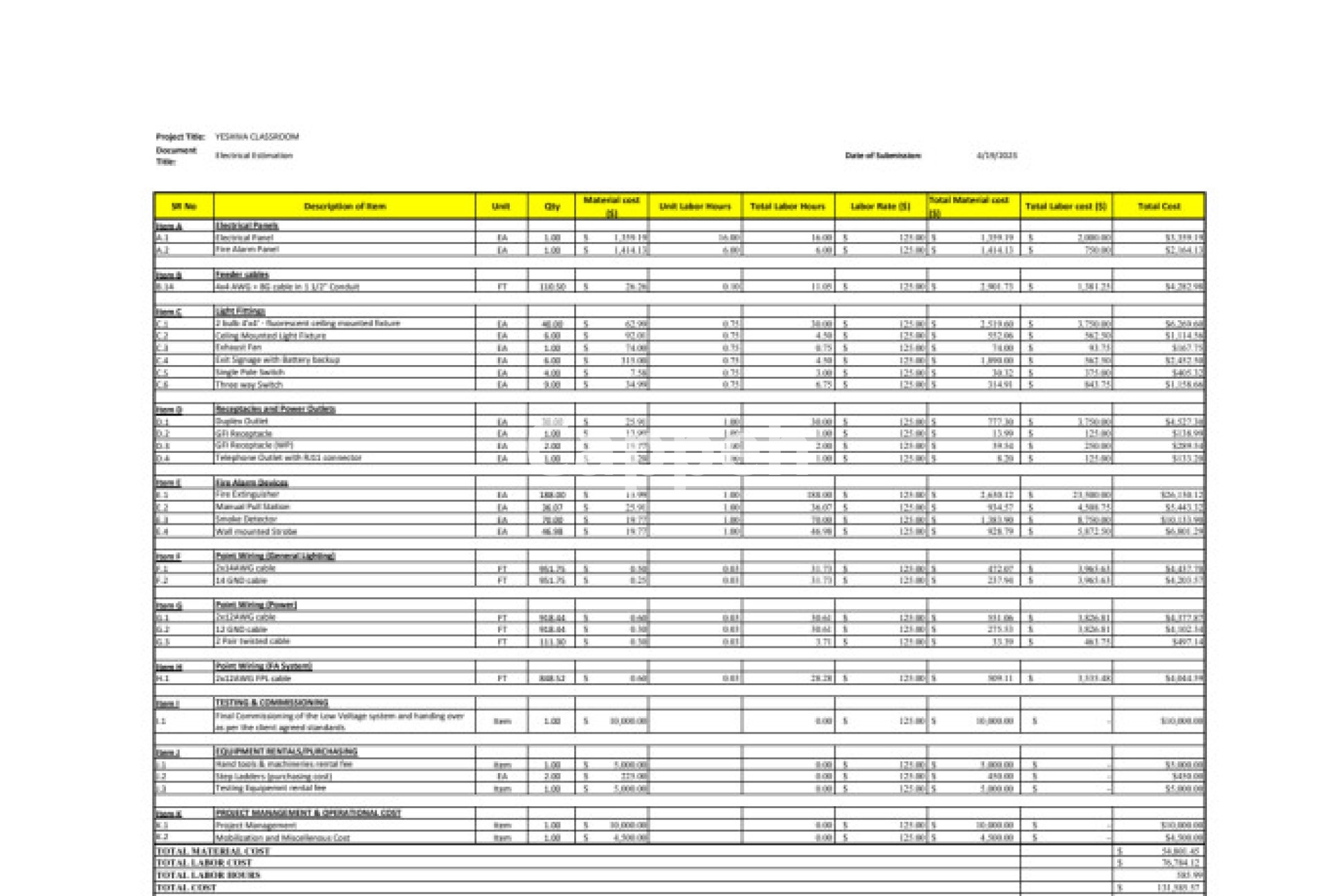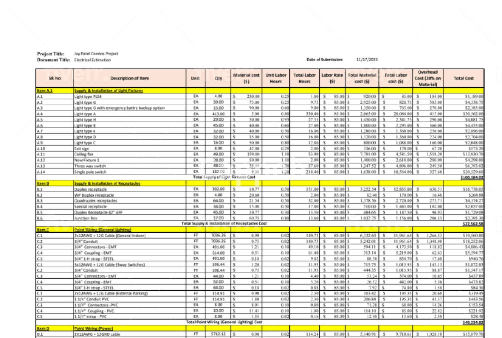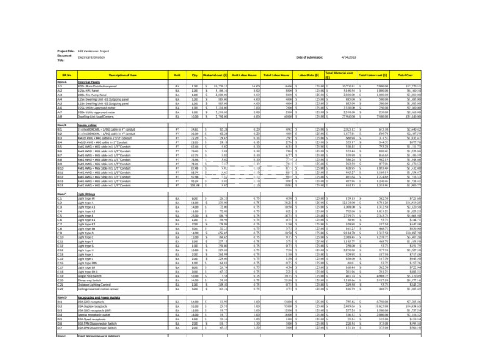 - Reference using The National Electrical Estimator 2023 (USA) & Spon's Electrical & Mechanical (UK) for estimates.