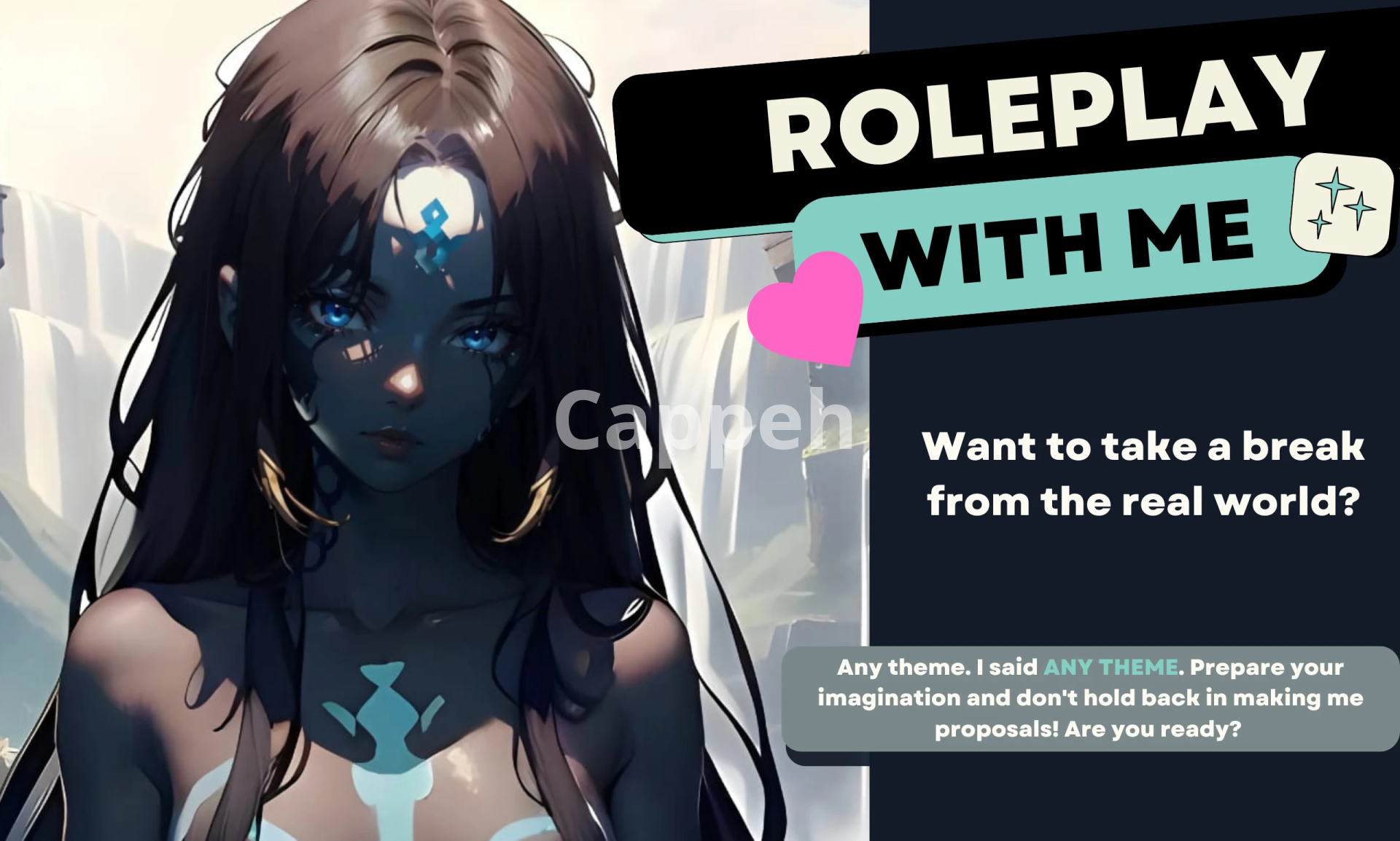 From fantastical realms to everyday scenarios, no theme is off-limits. Bring your own ideas to the table – I'm eager to weave compelling stories together. If you're feeling uninspired, I offer a diverse cast of original characters and plotlines, ranging from lighthearted and whimsical to more mature and complex, tailored to your preferences. We can craft concise exchanges or delve into rich, detailed descriptions – the pace is yours to set.