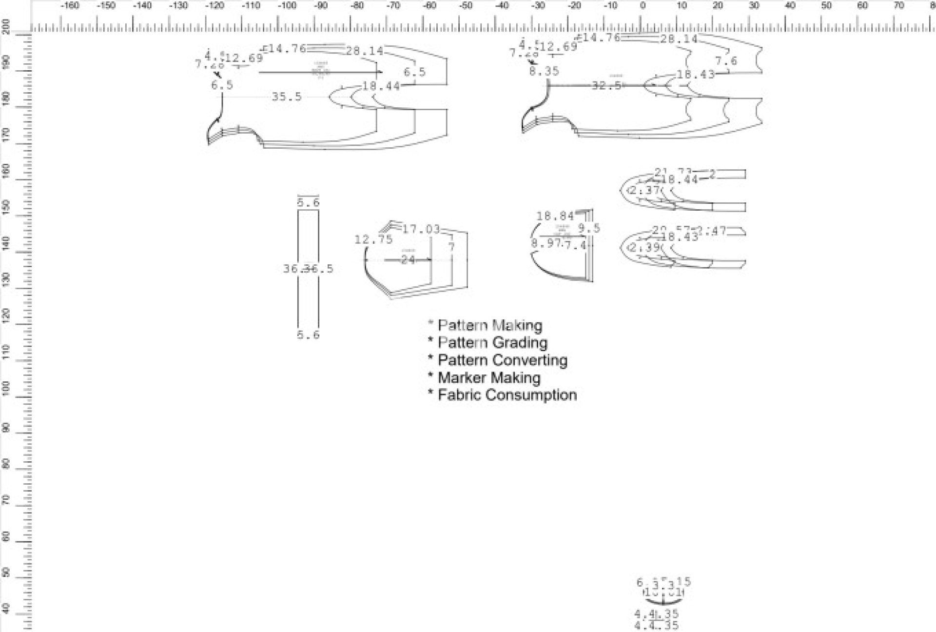 In addition to pattern making, I also offer services such as pattern grading, correction, marker making, pattern converting, and fabric consumption analysis.